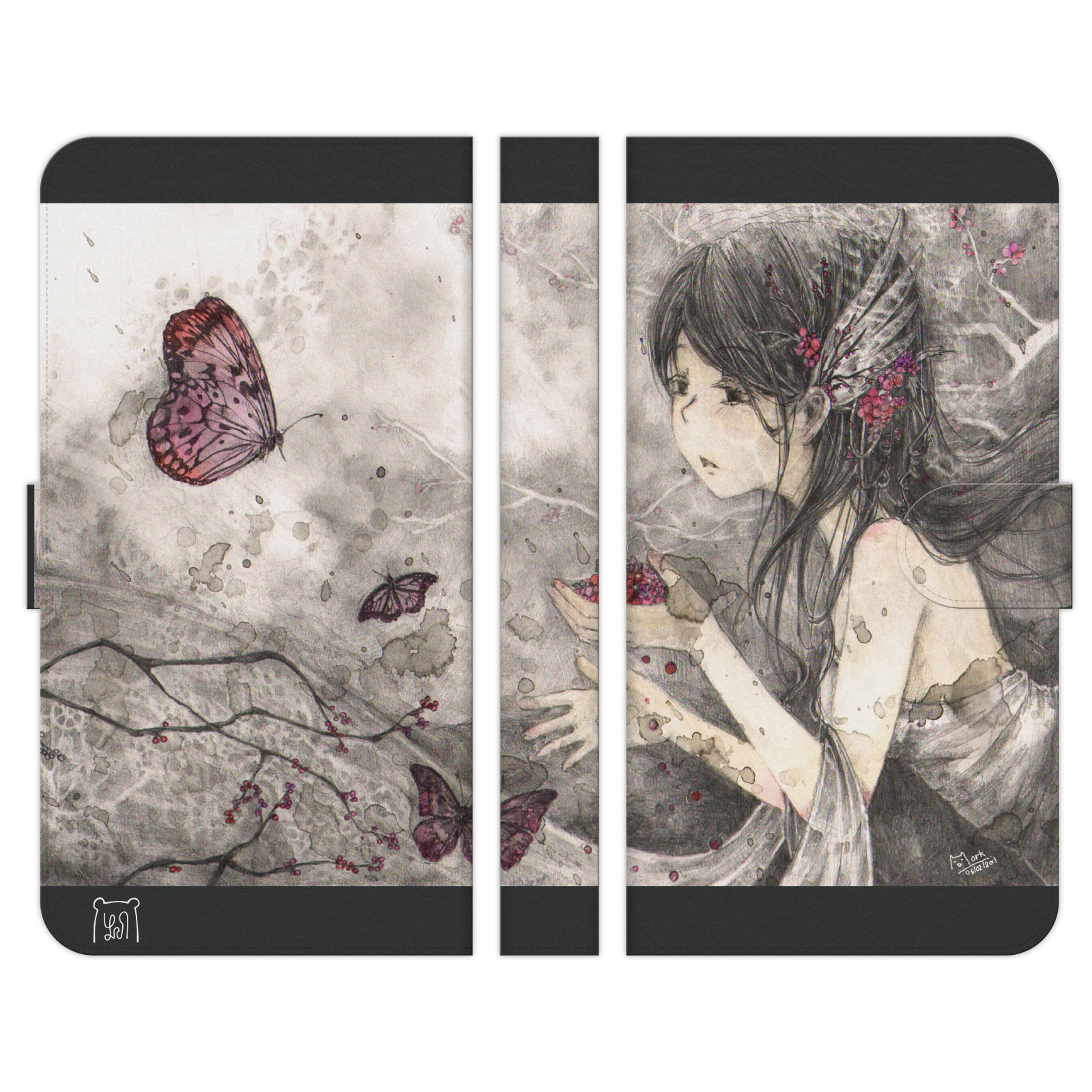 HUAWEI honor6 Plus 手帳型 スマホ ケース カバー 蝶々 モーク イラスト デザイナーズ チョウ 女の子 絵画 ファーウェイ Android au docomo softbank アンドロイド エーユー オーダーメイド おしゃれ おすすめ オリジナル お祝い お揃い カードケース カップル かわいいで、