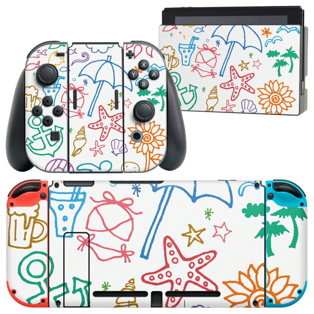 igsticker Nintendo Switch 用 デザインスキンシール 任天堂 ニンテンドー スイッチ 専用 本体ドック Joy-Con Joycon ジョイコン 専用 ゲーム機 カバー アクセサリー フィルム ステッカー 005342 海 太陽 夏 イラストで、