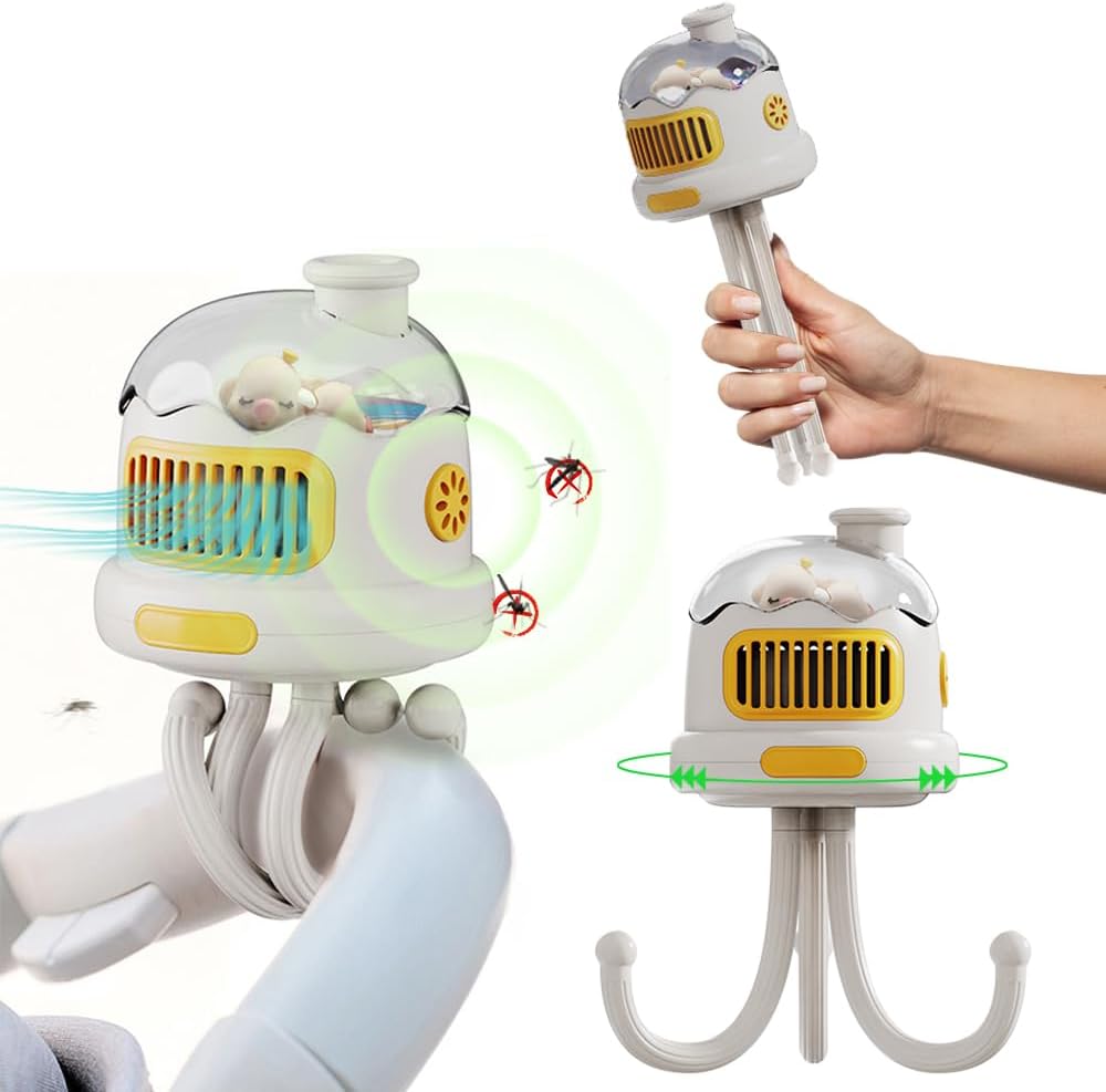 ハンディファン | 防蚊 卓上扇風機 三脚 手持ち扇風機 タコの爪 携帯扇風機 羽根なし 卓上/手持ち/巻き付け 自動首振り 3段階調節 ミニ扇風機 USB充電 暖かな光の小夜灯 静音 軽量 扇風機