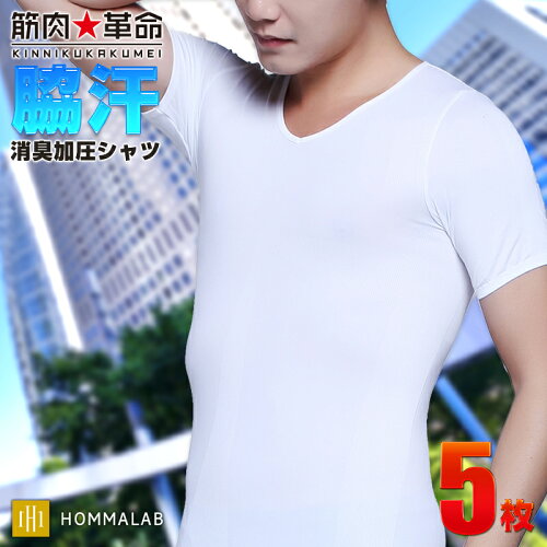 【5枚セット】消臭汗取り 加圧シャツ 脇汗パッド付き 吸汗速乾 加圧 Tシャツ 汗対策 防臭 抗菌 Vネック 加圧インナー 下着 半袖 メンズ 加圧トレーニング 腹筋 メンズインナー 背筋 姿勢 アンダーシャツ エクササイズ スポーツ インナー【筋肉革命】【takumu】