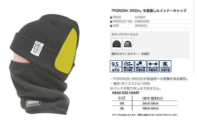eb'sはこちらから >>> □商品詳細 ■MODEL:HEADCAP PAD-XRD ■小売希望価格:3,200円+(税) ●カラー:BLACK ●サイズ(頭周り):SM 56-58cm .ML 58-60cm -eb's プロテクターはこちらから -------------------------------- ビーニーなどの内側に装備し後頭部を保護 ・PORON(R) XRD(R)が後頭部への衝撃を吸収緩和。